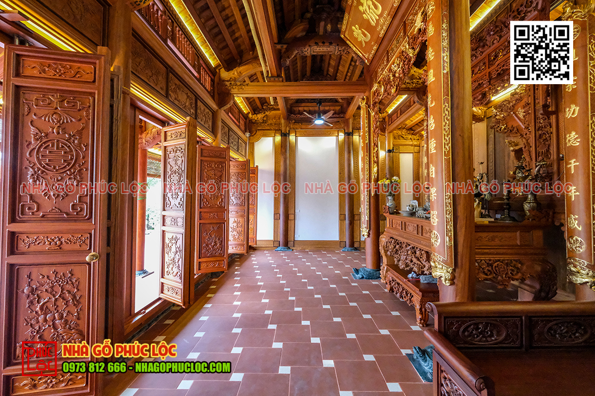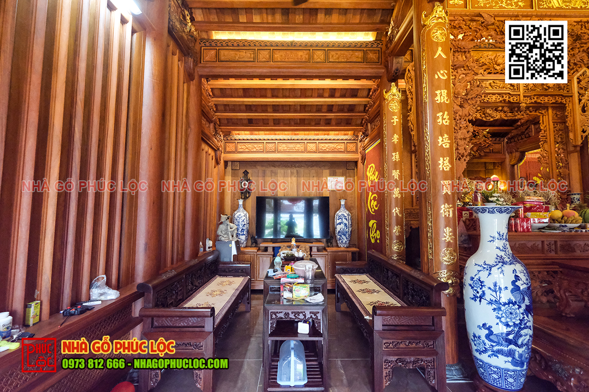 Không gian nhà gỗ lim 5 gian rộng và thoáng