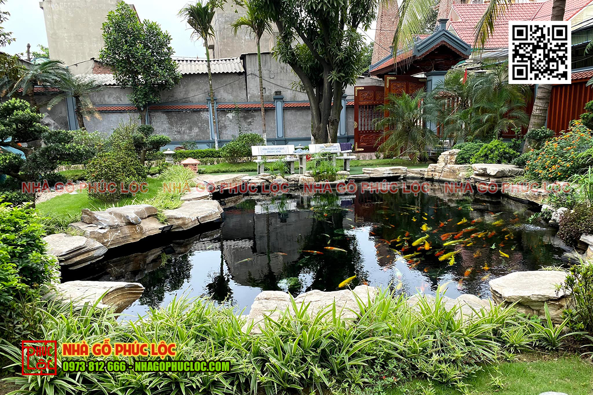- Ngoài ra, sân vườn nhà gỗ 5 gian còn có thể được trang trí thêm các tiểu cảnh như: ao sen, hòn non bộ,… tạo nên một không gian sinh động, hấp dẫn.