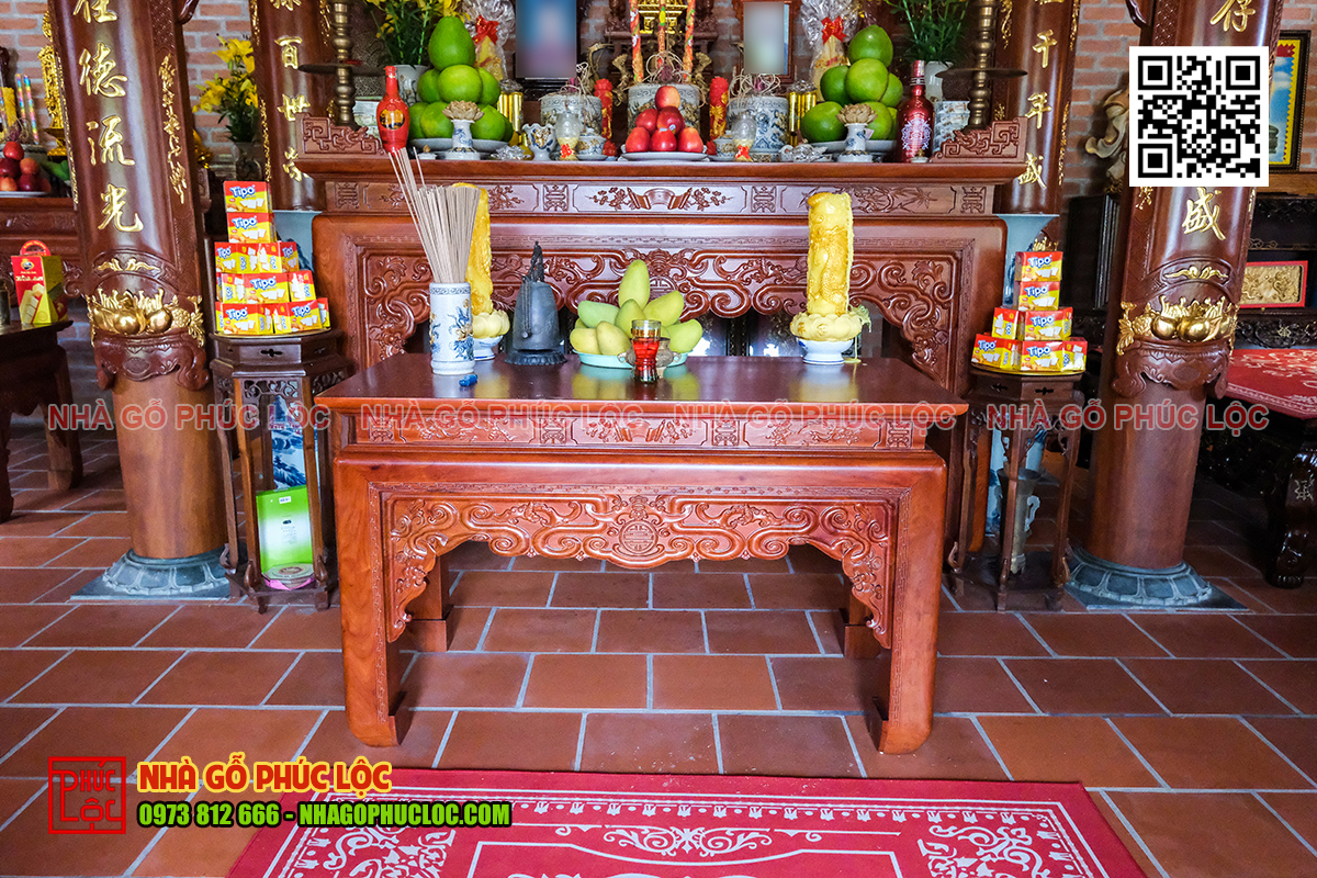 Bàn thờ thường đặt sát tường hậu, hướng ra phía trước, tạo cảm giác vững chãi và trang trọng. Khi bước vào nhà, gian giữa chính là nơi đầu tiên đập vào mắt, biểu trưng cho sự hiện diện của tổ tiên trong không gian sống. Vị trí này không chỉ thuận tiện cho việc thờ cúng mà còn mang ý nghĩa cầu chúc bình an, phúc lộc cho cả gia đình.